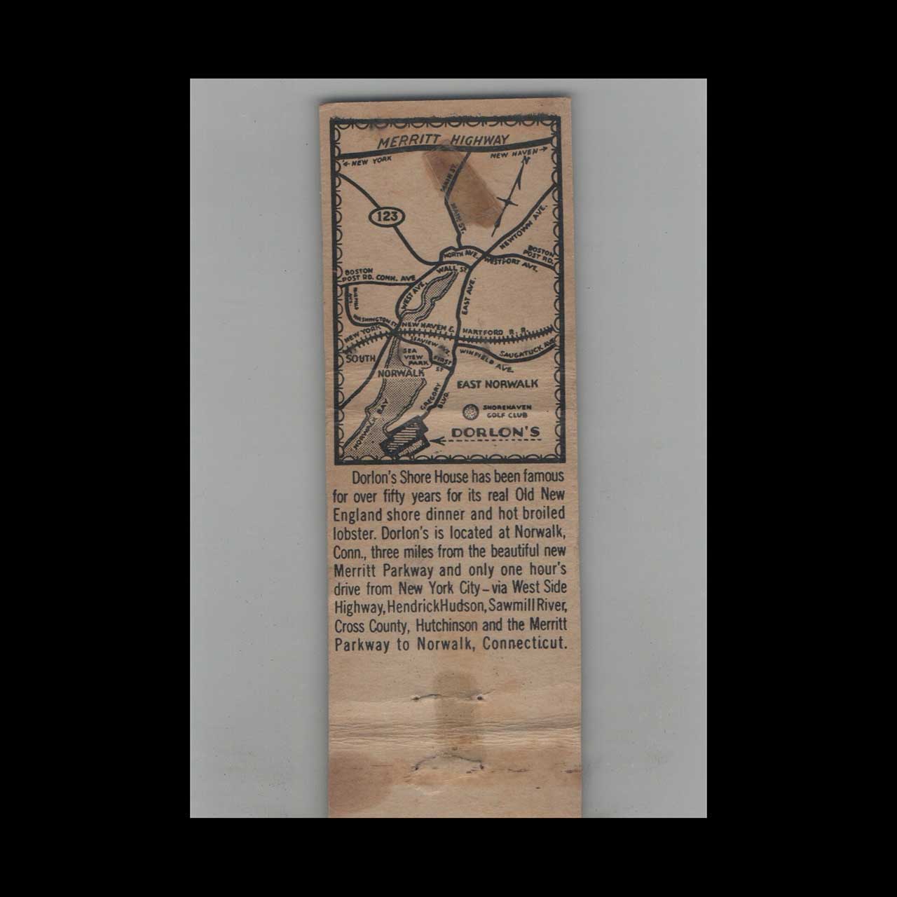 Matchbook Cover Federal Match Co. Dorlon’s Shore House Norwalk CT