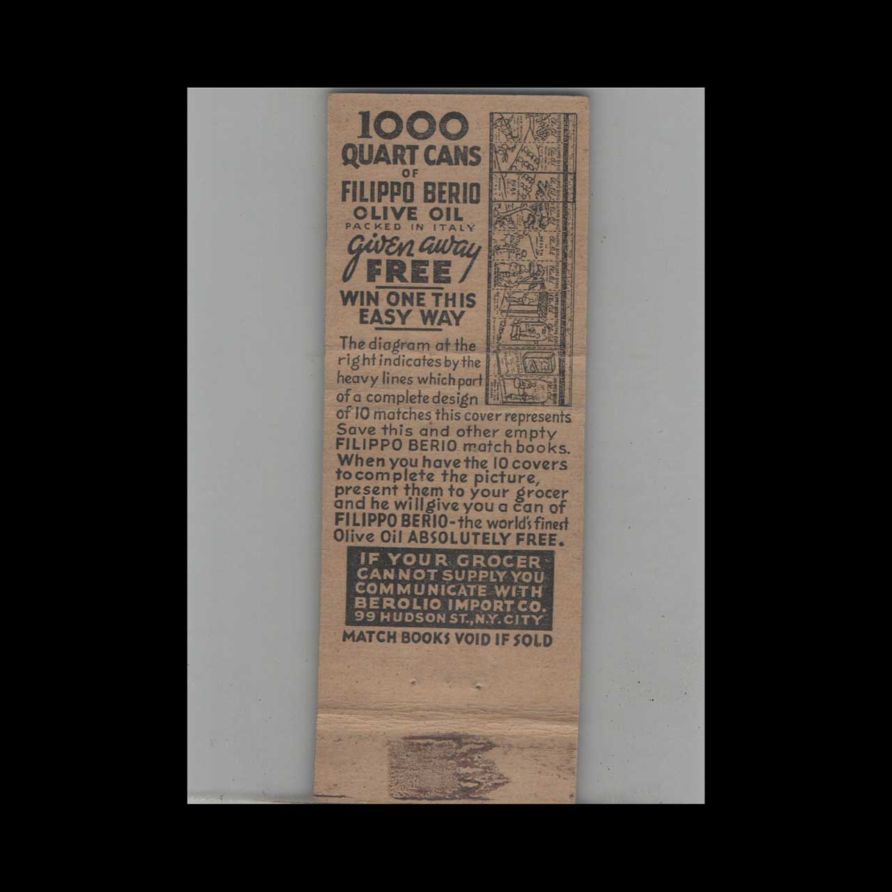 Matchbook Cover Federal Match Co. Filippo Berio Olive Oil #12