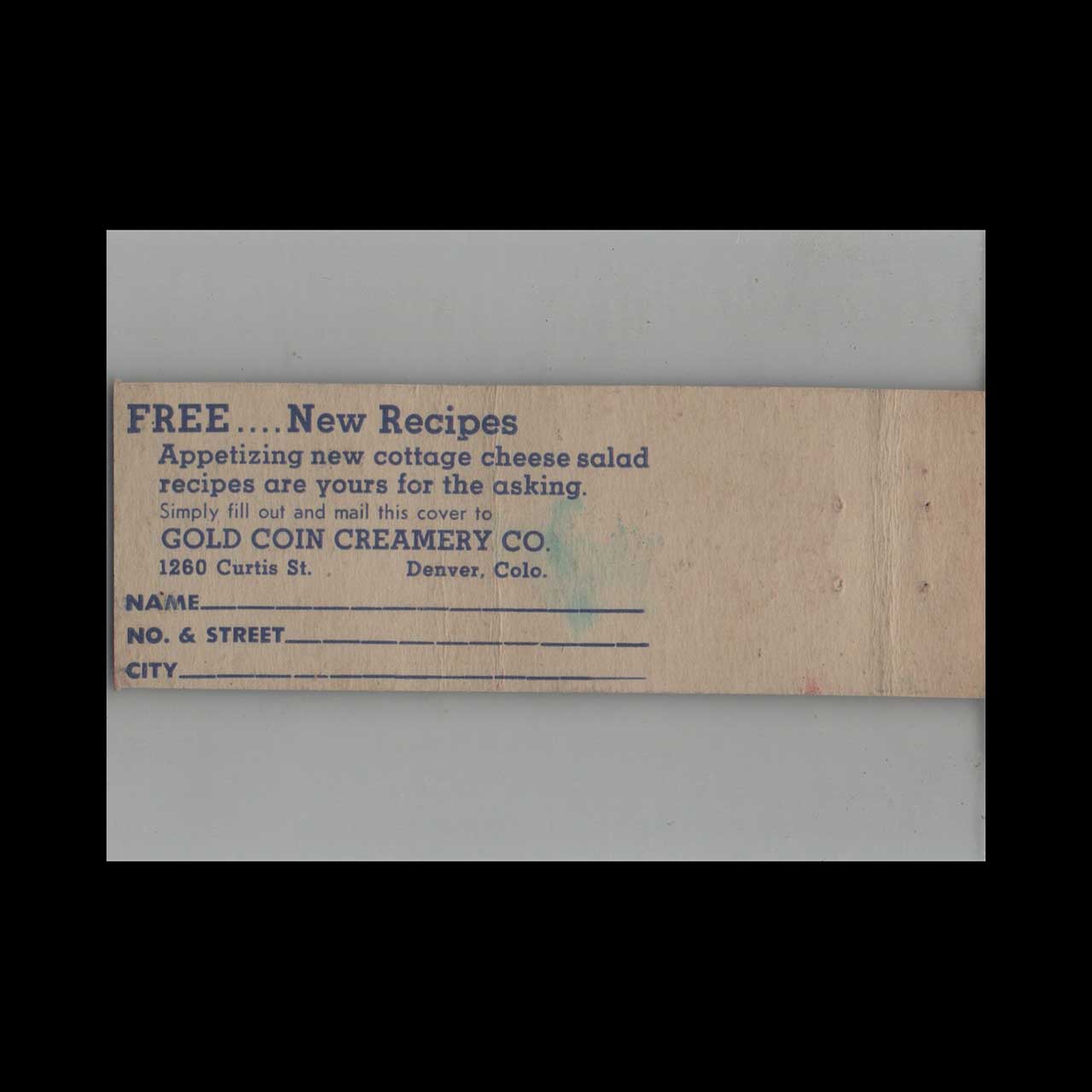 Matchbook Cover Federal Match Co. Gold Coin Creamery Denver CO