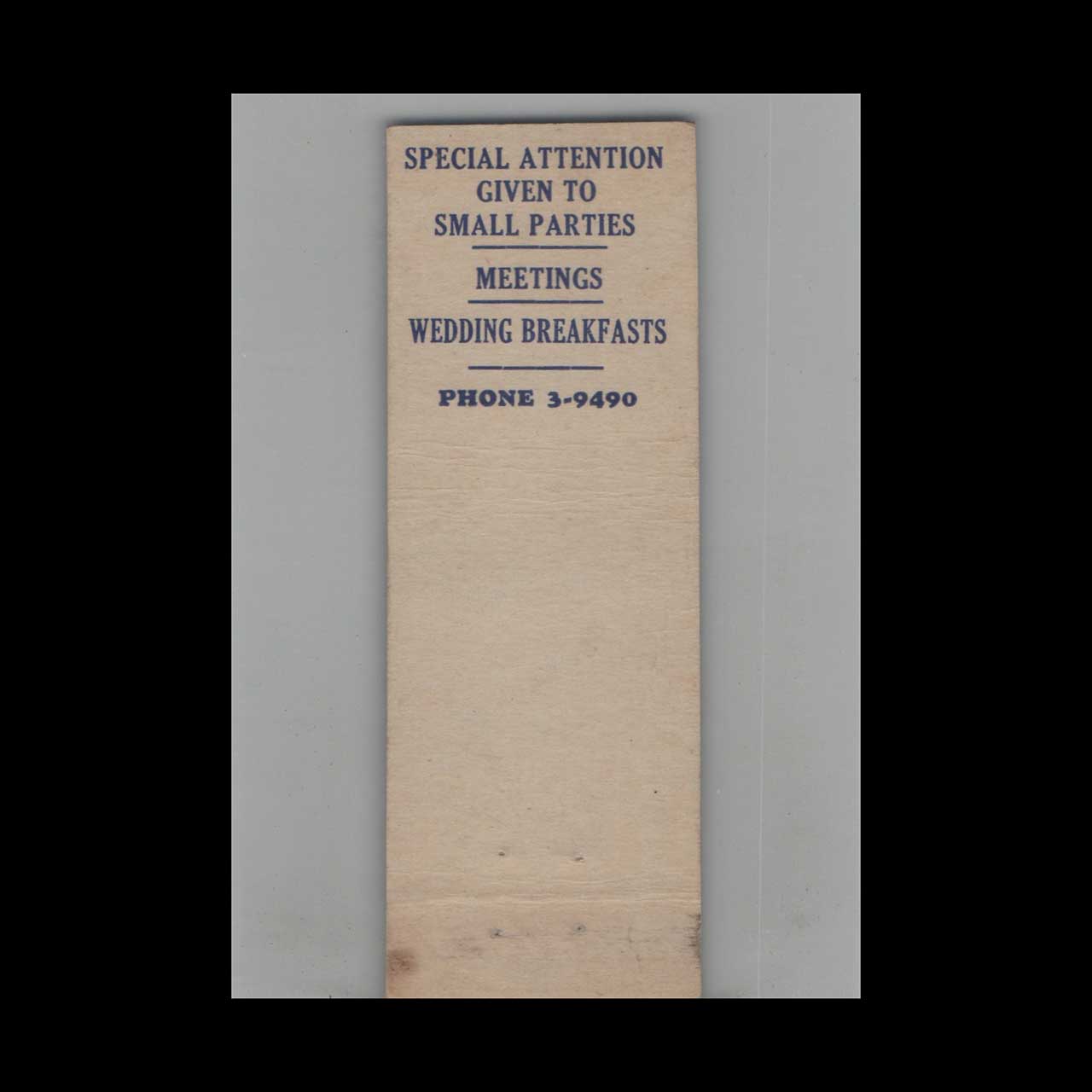 Matchbook Cover Federal Match Co. Kell’s Restaurant Worcester MA