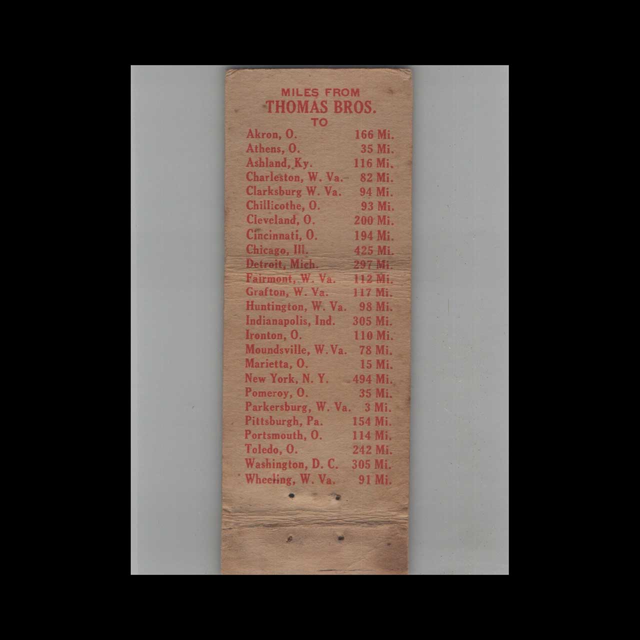 Matchbook Cover Federal Match Co. Thomas Bros. Rockland OH