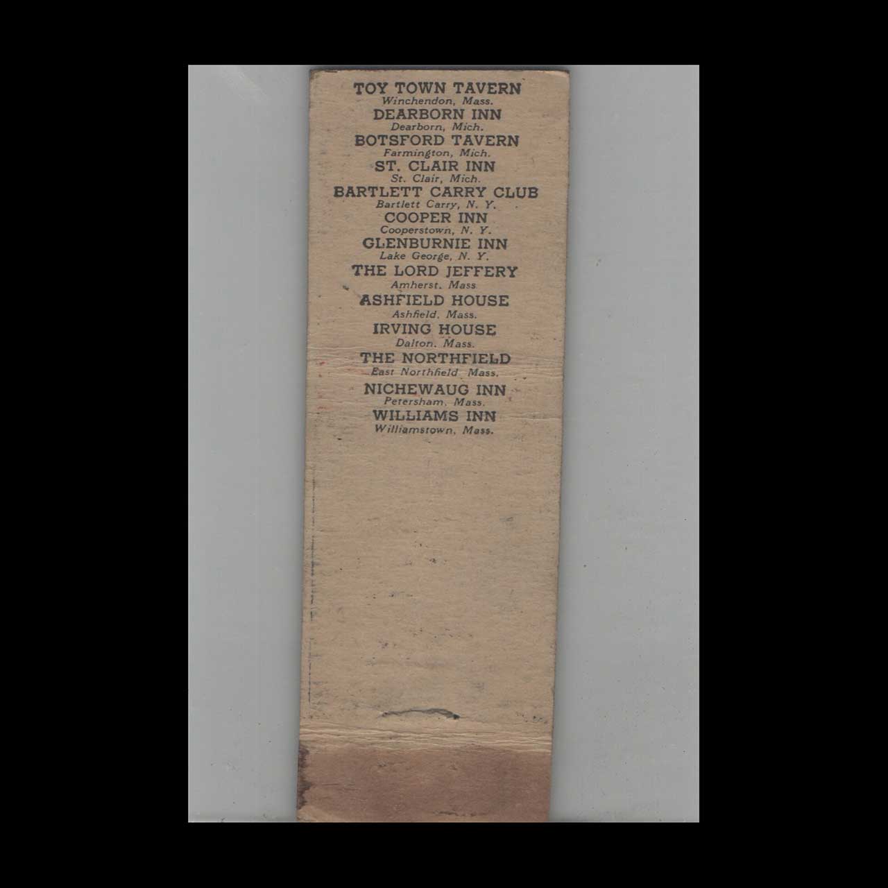 Matchbook Cover Federal Match Co. White Heart Inn Salisbury CT