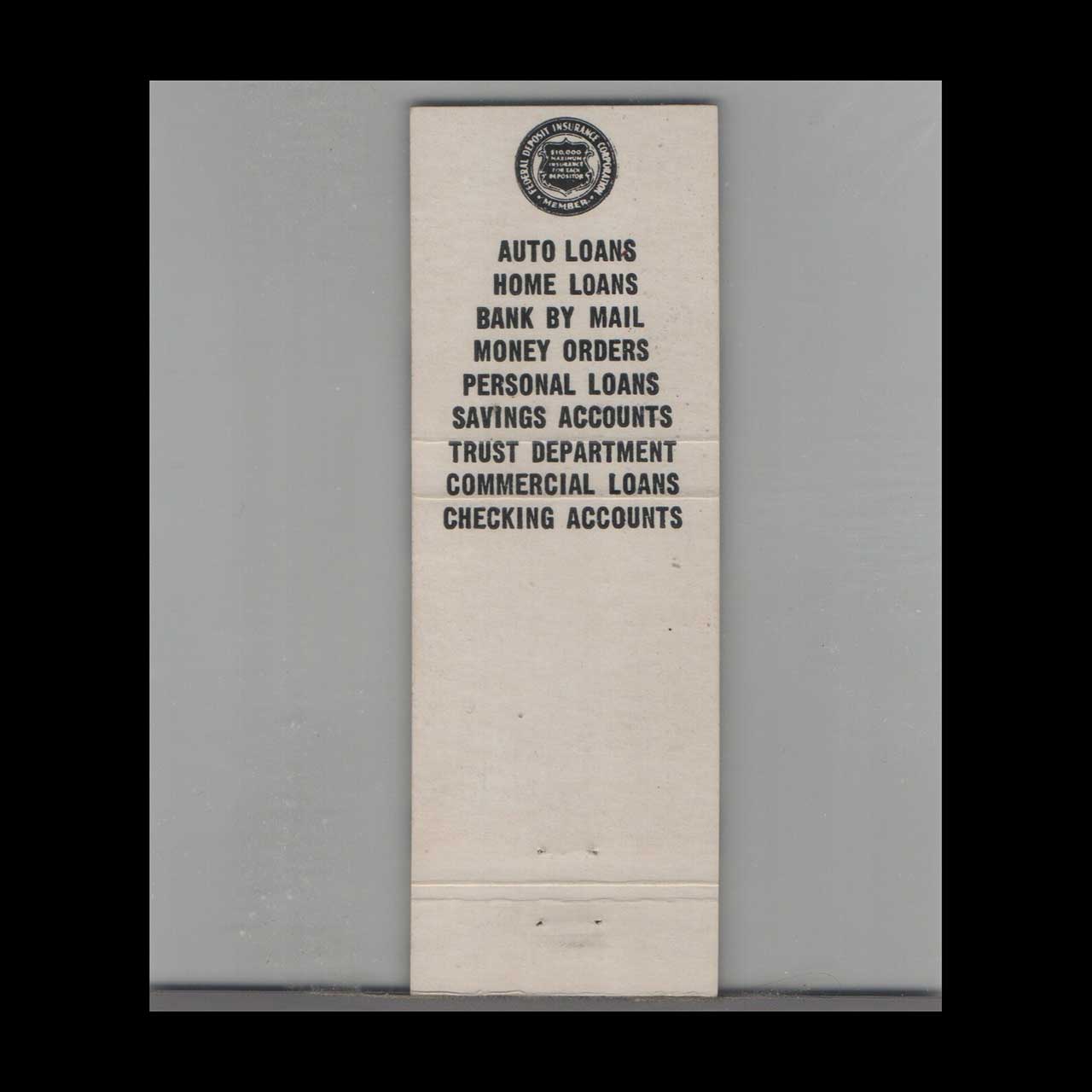 Vintage matchbook cover advertising First National Bank of Jackson, TN.