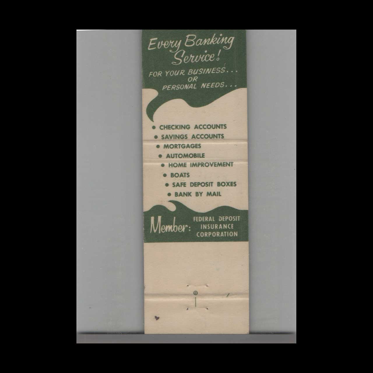 Vintage matchbook cover advertising First National Bank Of Scotch Plains.