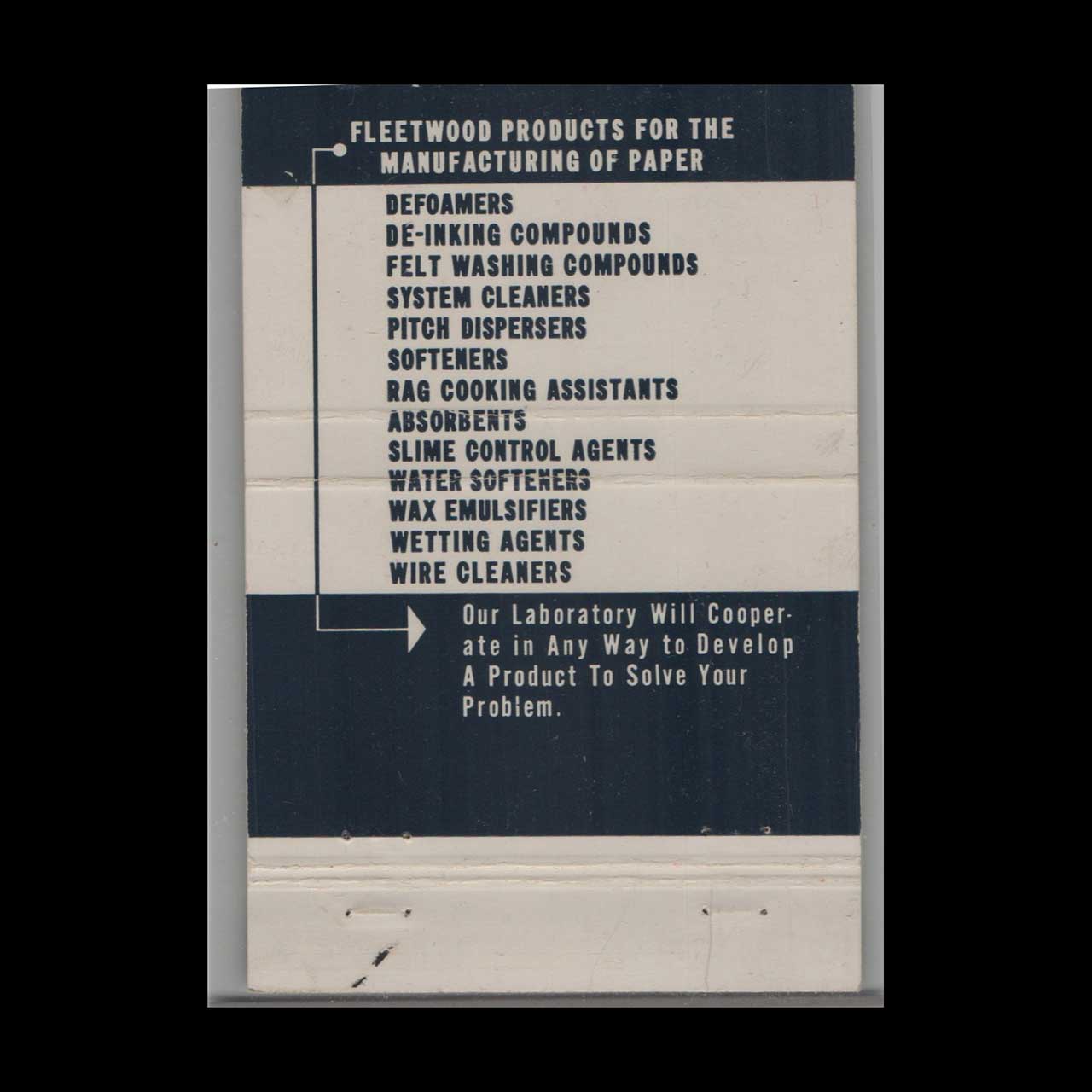 Vintage matchbook cover advertising Fleetwood Manufacturing Chemists Webster MA #3.