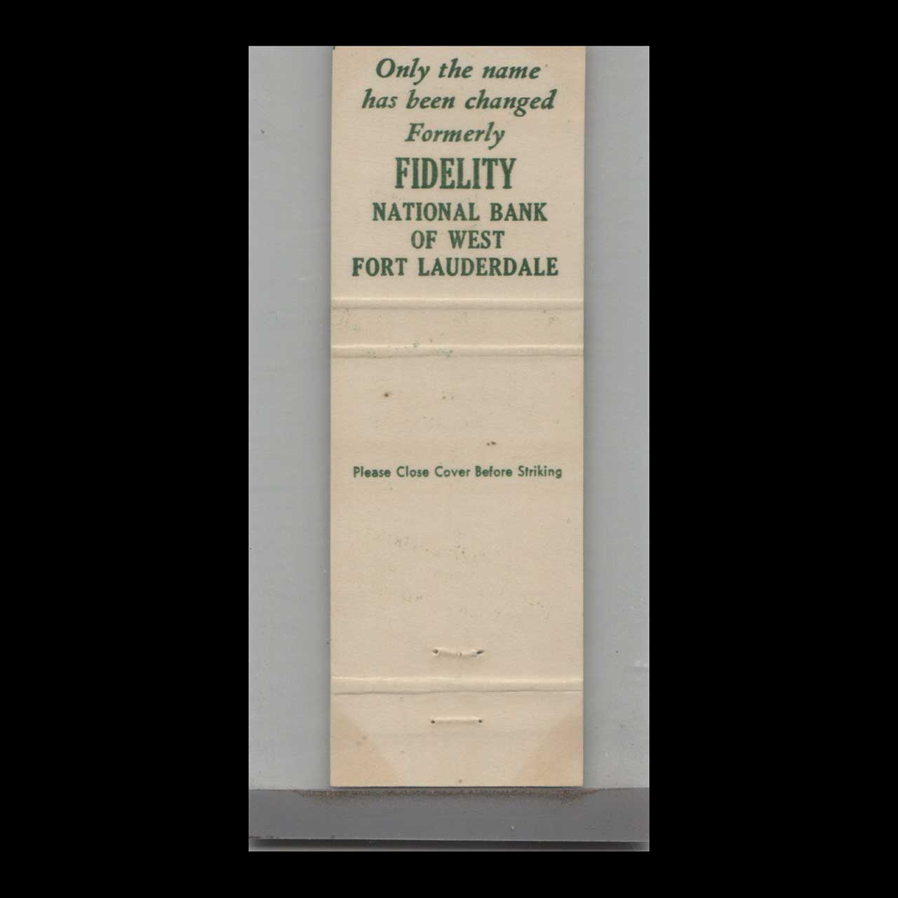 Vintage matchbook cover advertising Florida First National Bank Plantation, FL.