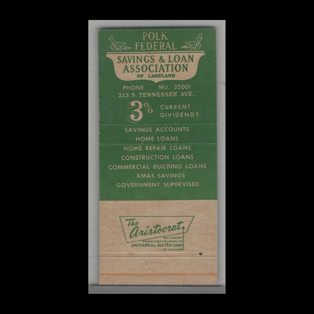 Vintage matchbook cover advertising Florida Polk Federal Savings & Loan Lakeland, FL.