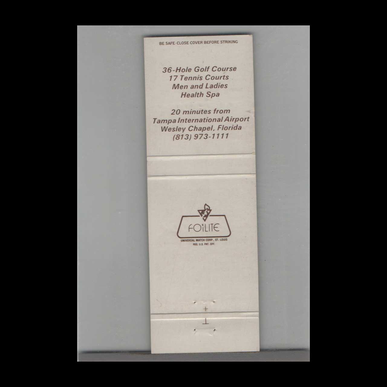 Vintage matchbook cover advertising Florida Saddlebrook Golf Course Wesley Chapel, FL.
