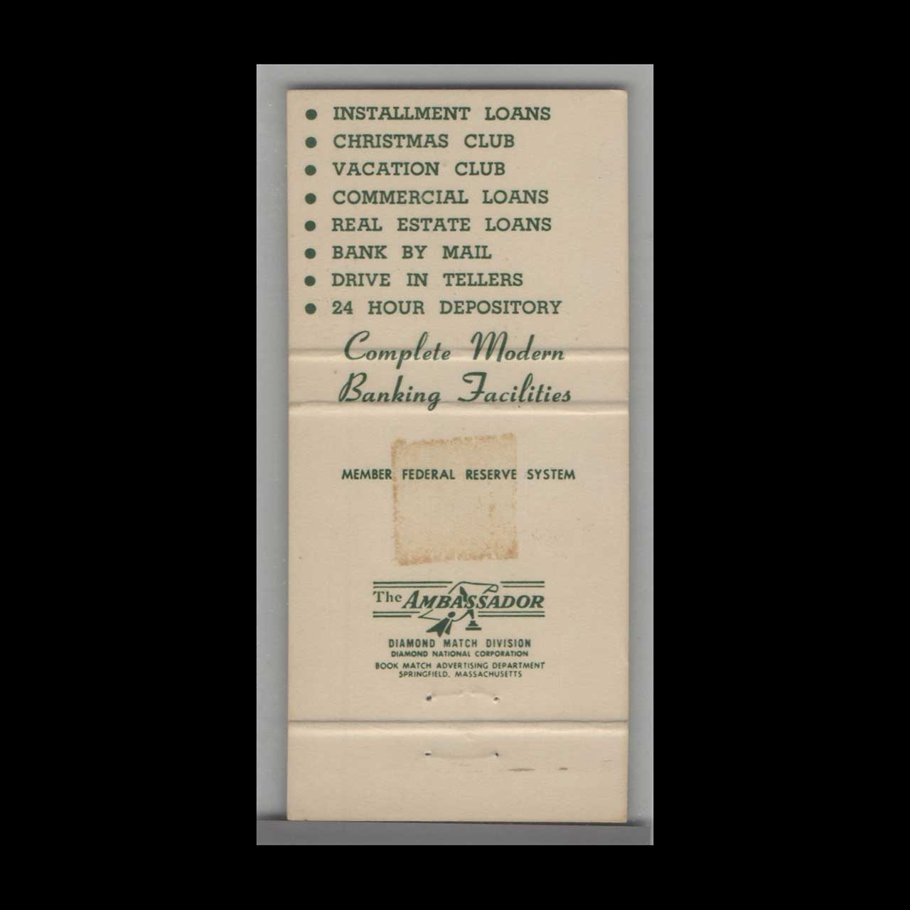 Vintage matchbook cover advertising Florida Springs National Bank Tampa, FL.