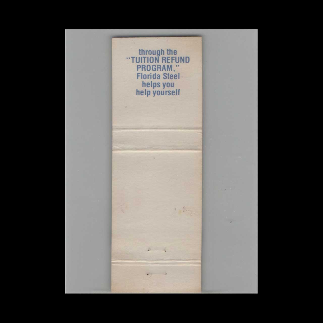 Vintage matchbook cover advertising Florida Steel Corporation Ocala, FL.
