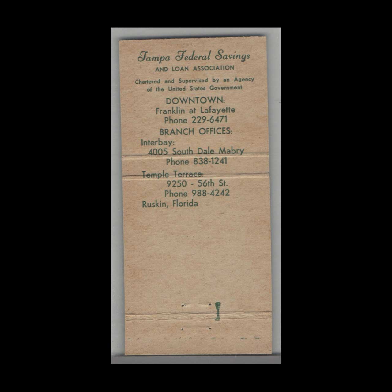 Vintage matchbook cover advertising Florida Tampa Federal Savings Bank Tampa, FL.