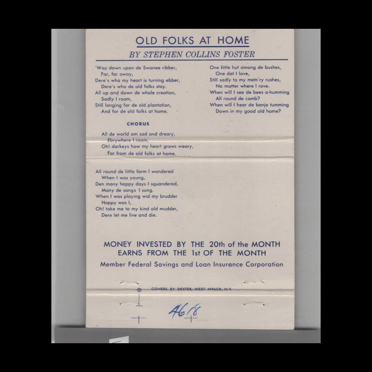 Vintage matchbook cover advertising Foster Federal Savings & Loan Association Pittsburgh, PA.