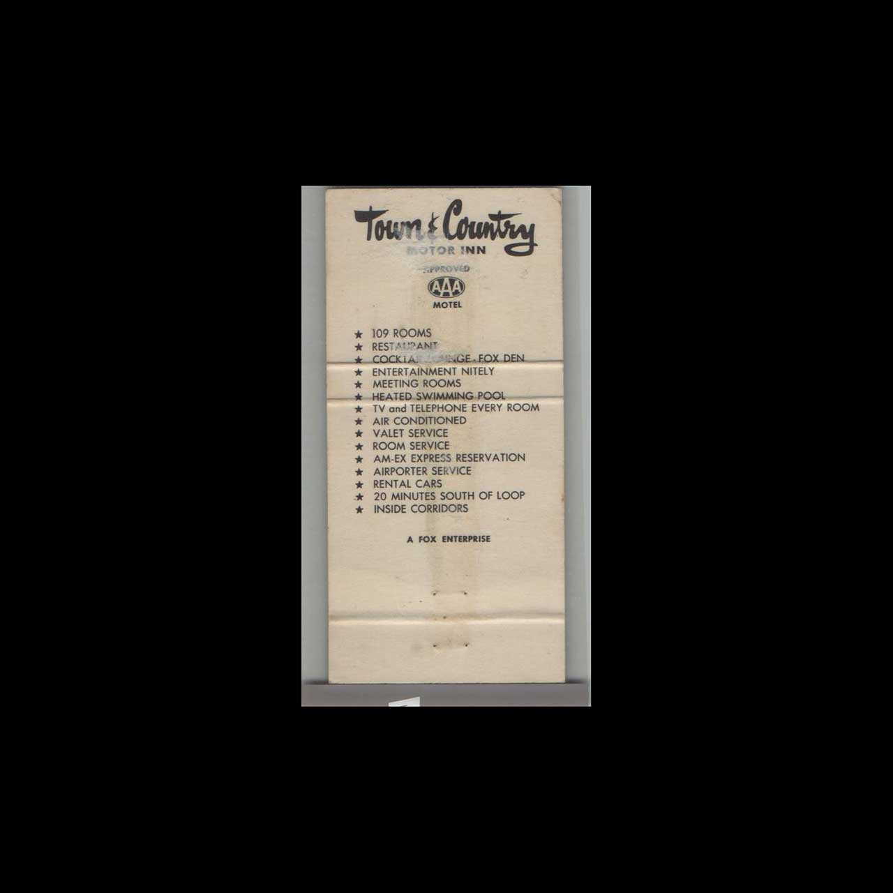 Vintage matchbook cover advertising Fox – Town & Country Motor Inn Calumet City, IL.
