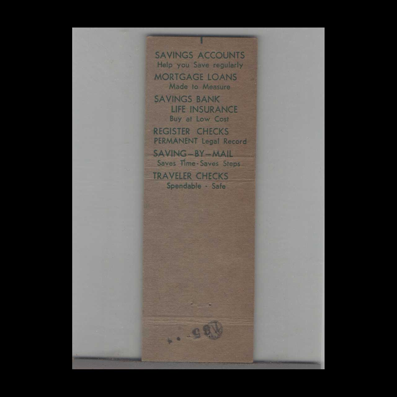 This vintage matchbook cover promotes Franklin Savings Bank 6 Park Square Boston, MA. Produced during the mid-century advertising era, it reflects period typography and graphic design. A collectible piece of American advertising ephemera suitable for display or archival preservation.