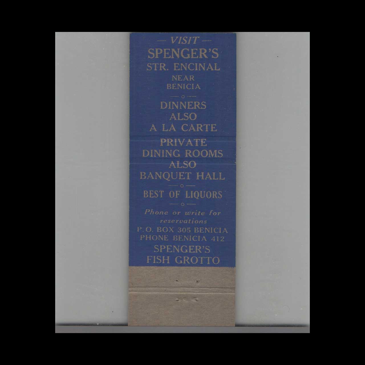 Vintage matchbook cover advertising Full Length Spenger’s In Benicia.