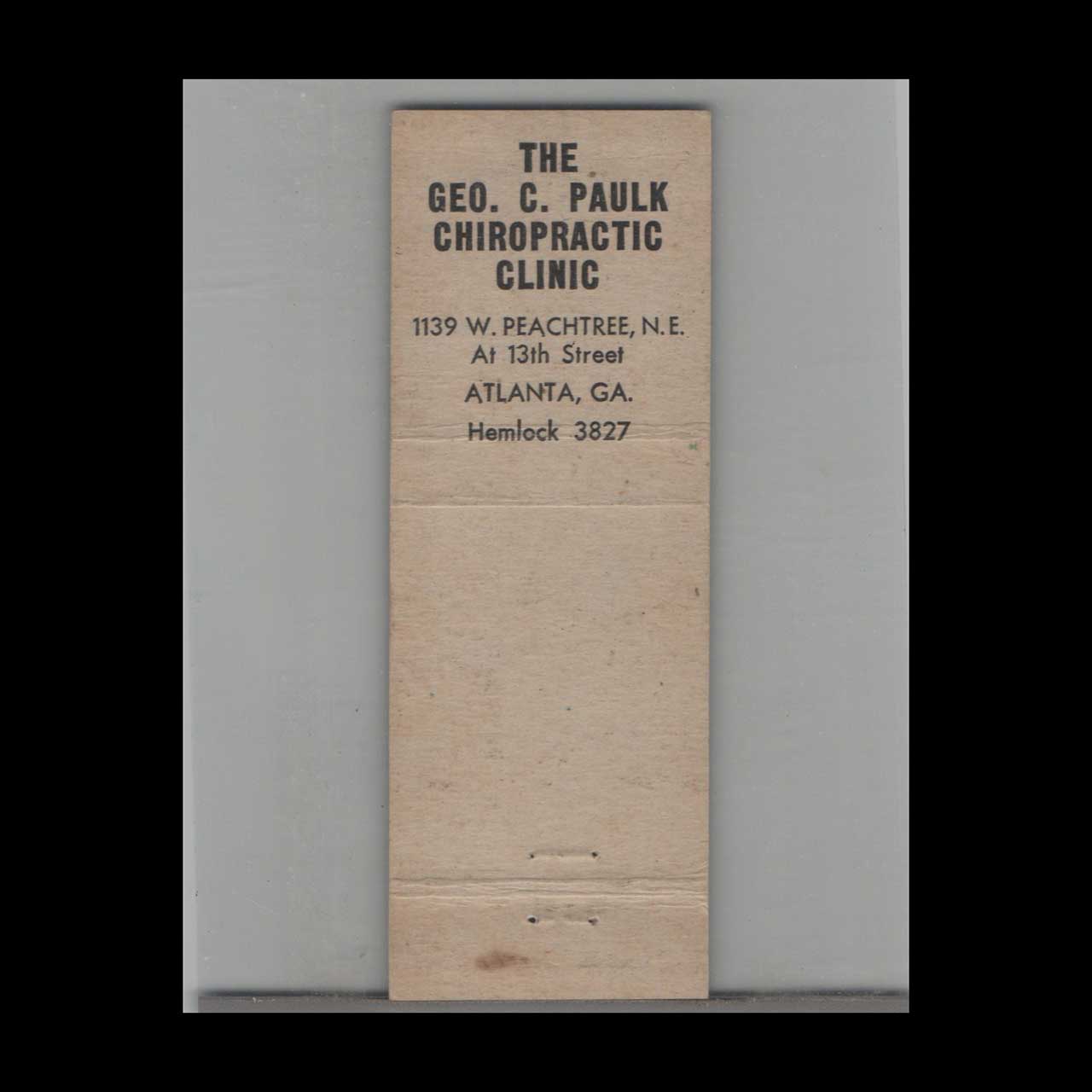Vintage matchbook cover advertising George C. Paulk Chiropractic Clinic Atlanta, GA.