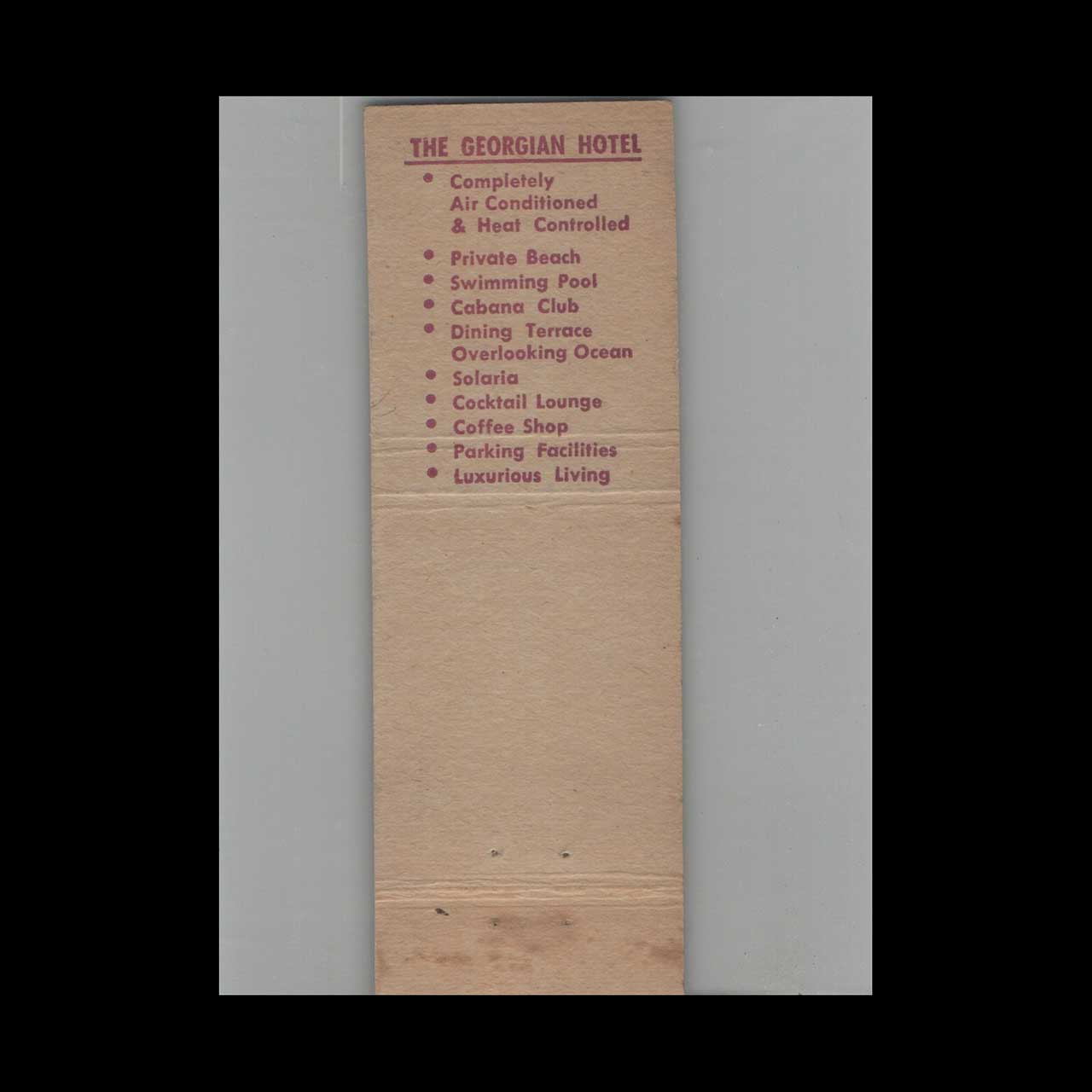 Vintage matchbook cover advertising Georgian Hotel Pool Cabana Club Miami Beach FL.