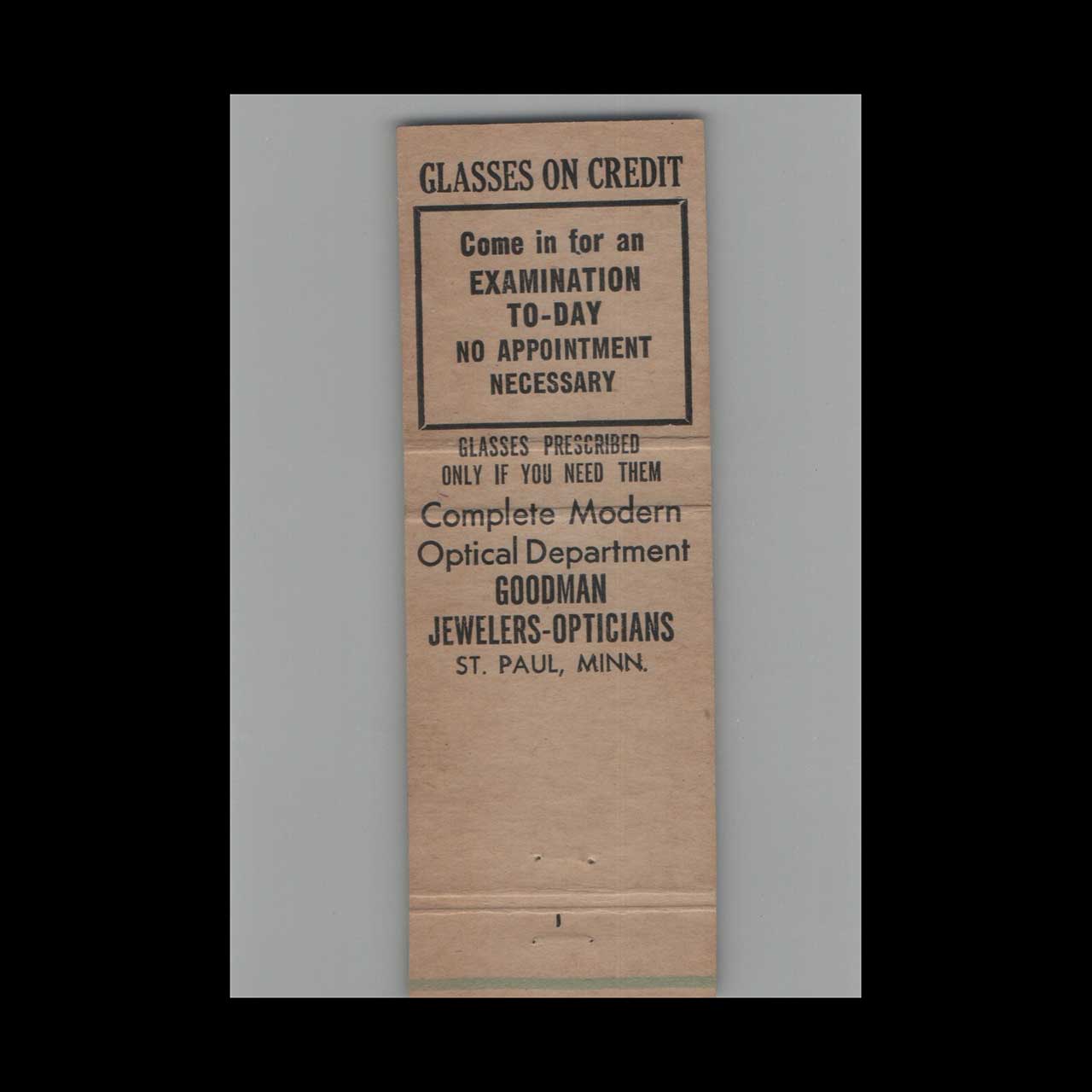 Matchbook Cover Goodman’s Jewelers and Opticians St. Paul MN