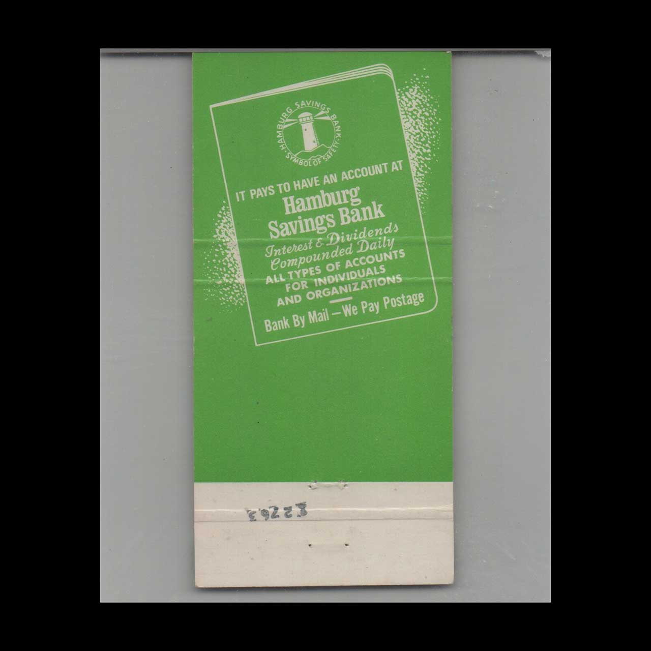 Vintage matchbook cover advertising Hamburg Savings Bank Brooklyn & Queens, NY.