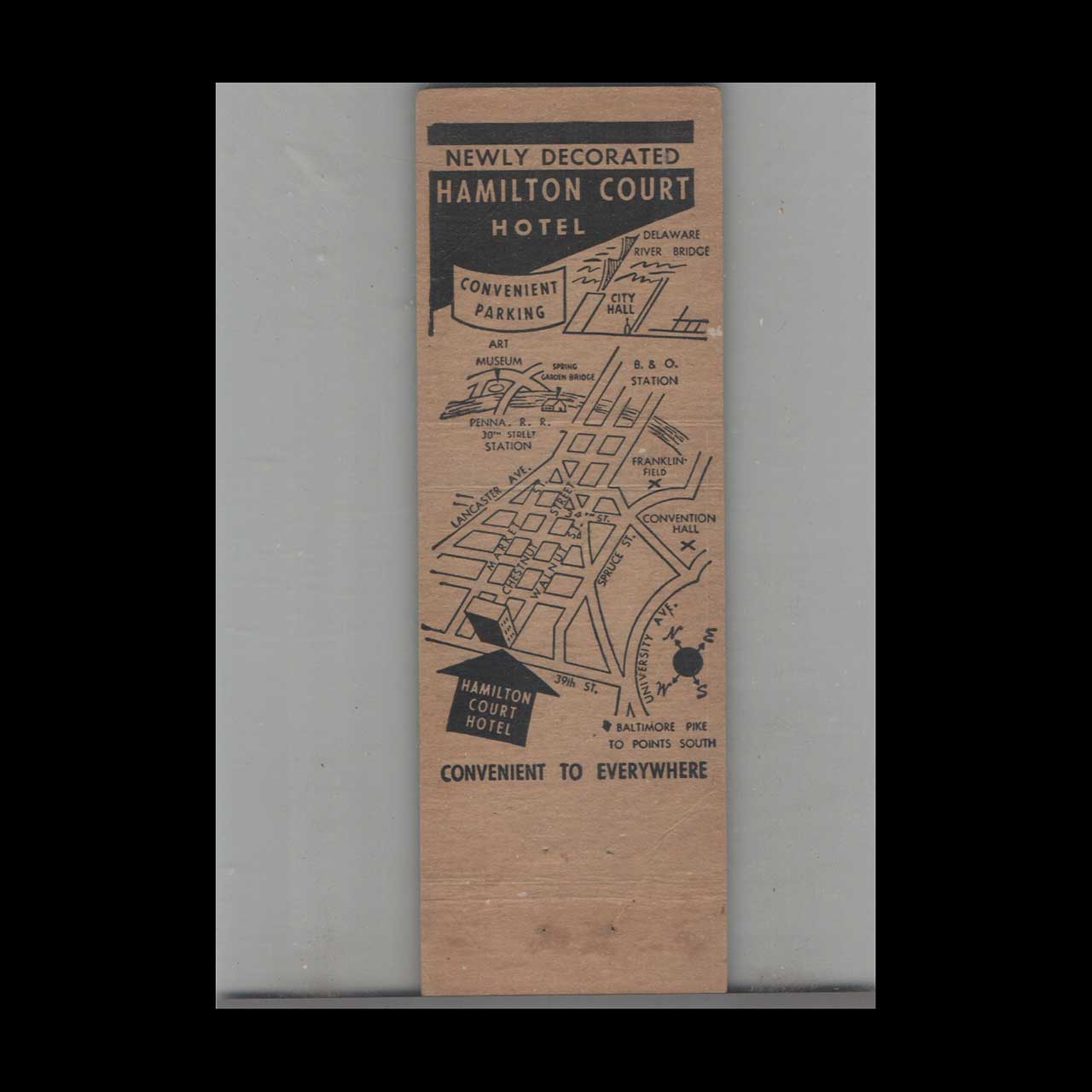 Vintage matchbook cover advertising Hamilton Court Hotel Philadelphia, PA.