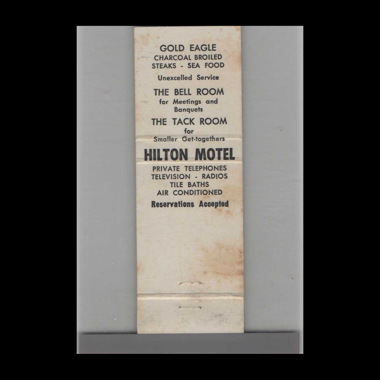 Vintage matchbook cover advertising Hilton Motel Brookville, PA.
