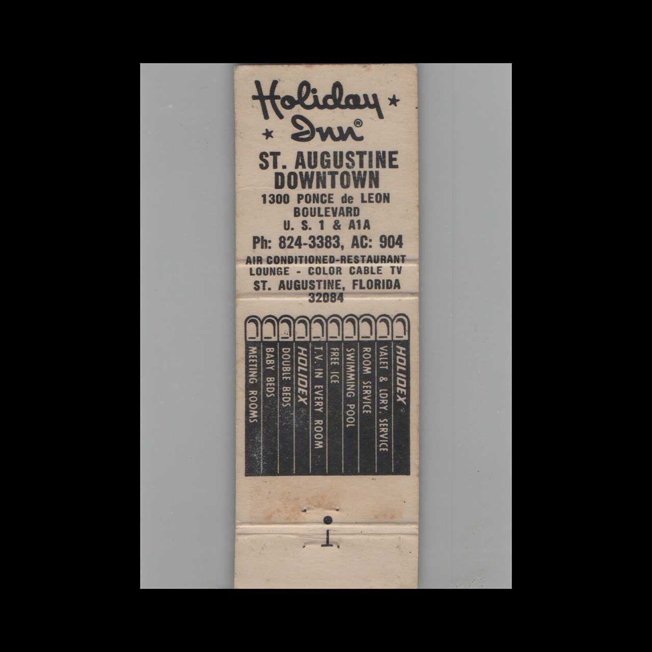 Vintage matchbook cover advertising Holiday Inn St. Augustine, FL.