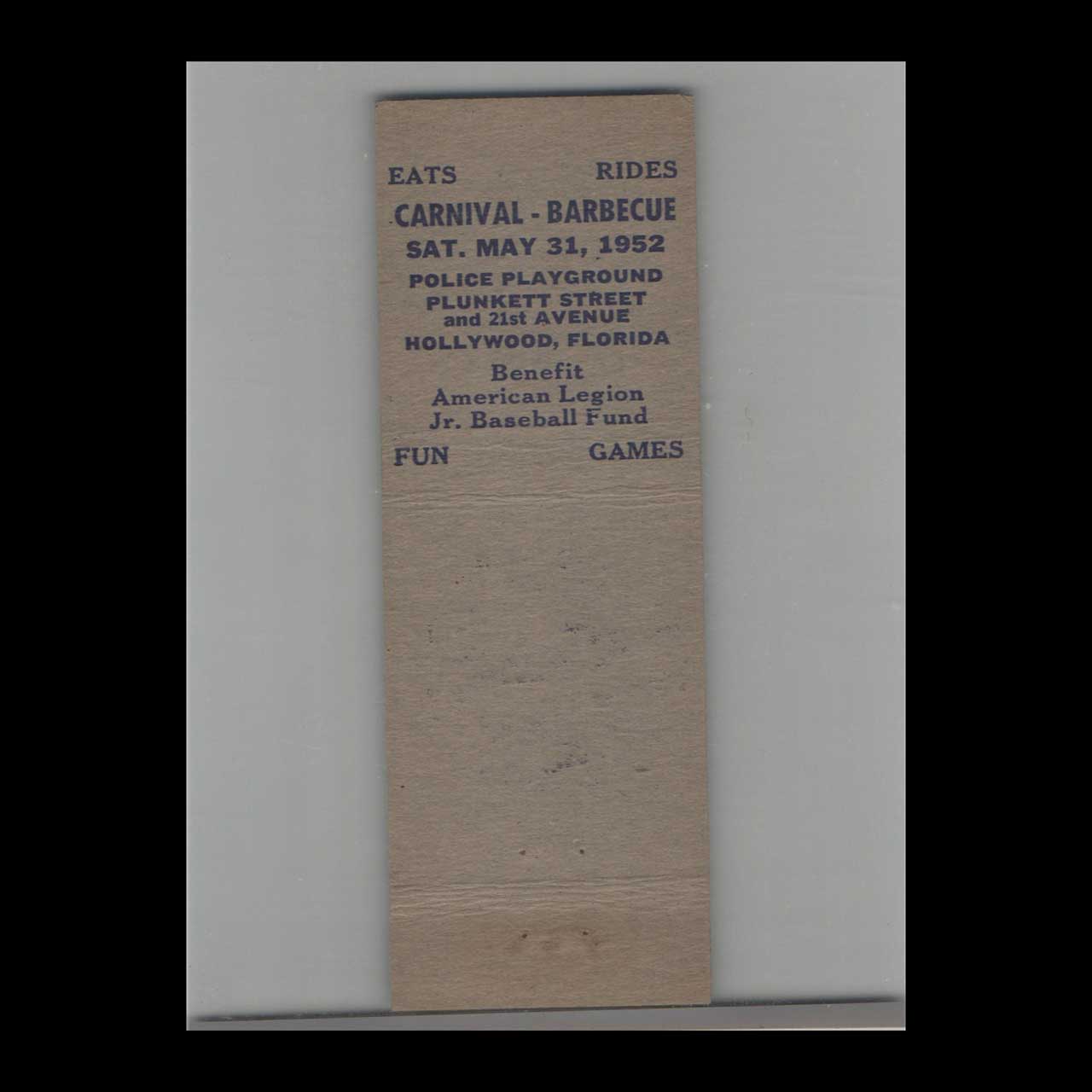 Vintage matchbook cover advertising Hollywood, Florida American Legion Hollywood Post No. 92.