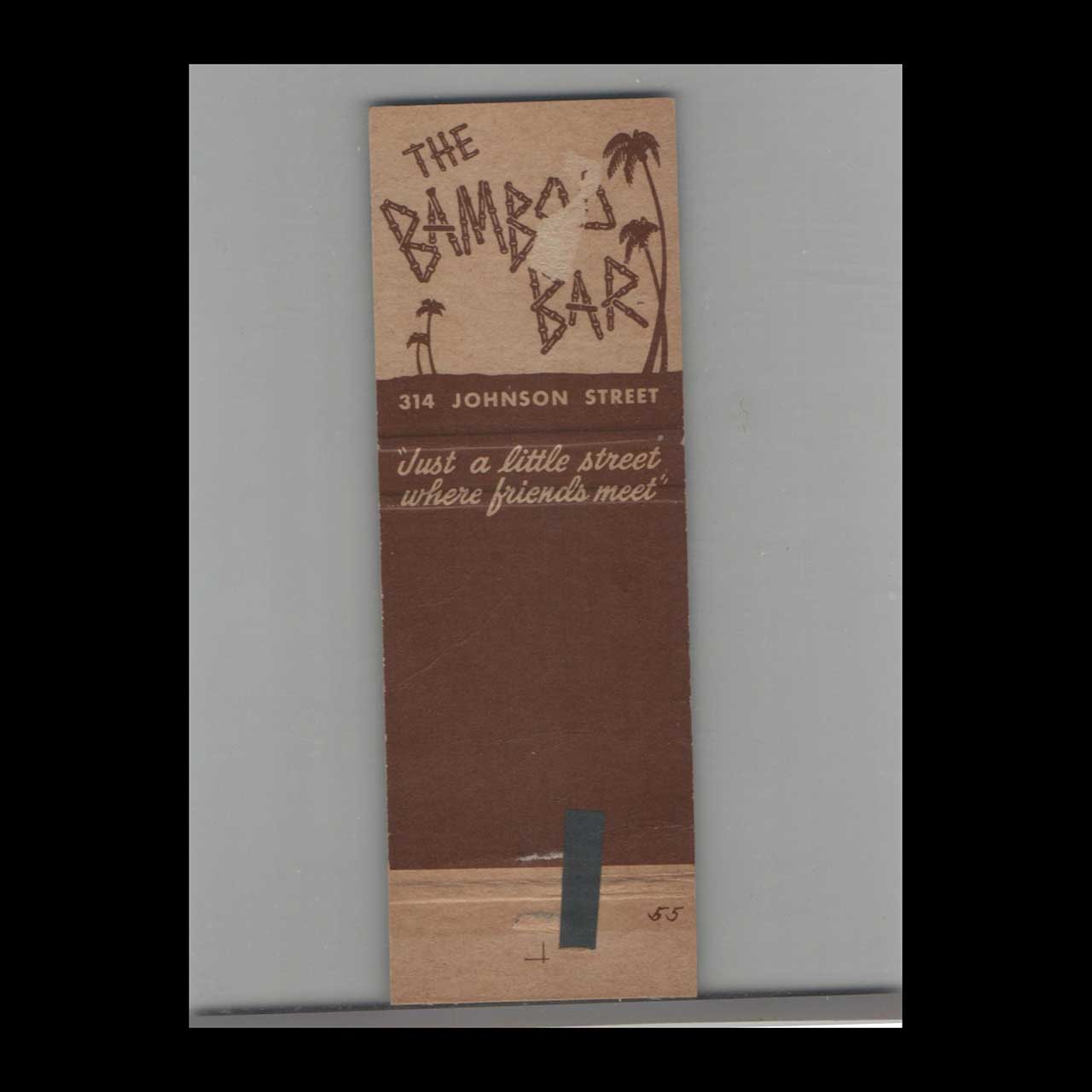 Vintage matchbook cover advertising Hollywood, Florida Bamboo Bar 314 Johnson Street.