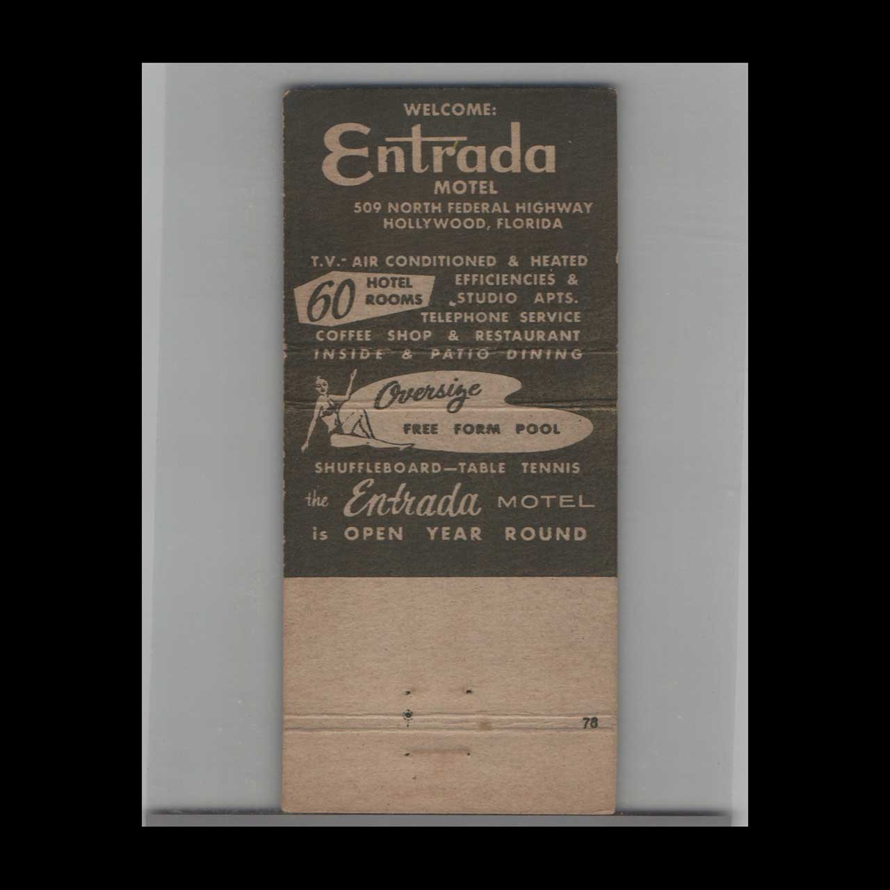 Vintage matchbook cover advertising Hollywood, Florida Entrada Motel.
