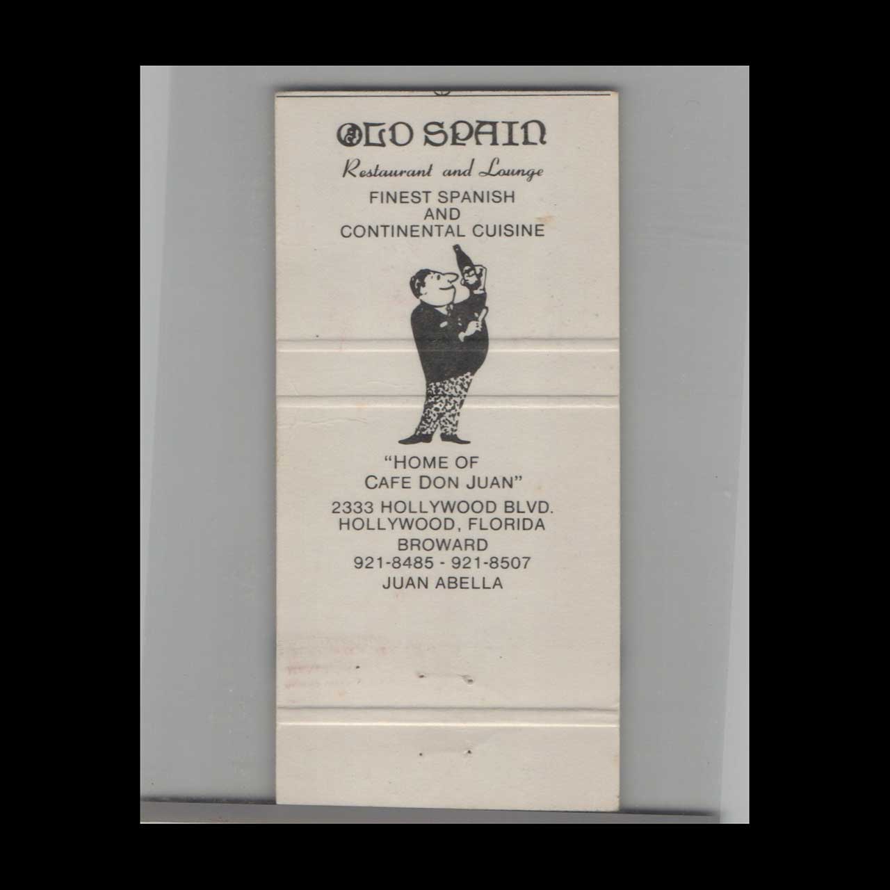 Vintage matchbook cover advertising Hollywood, Florida Old Spain Restaurant.