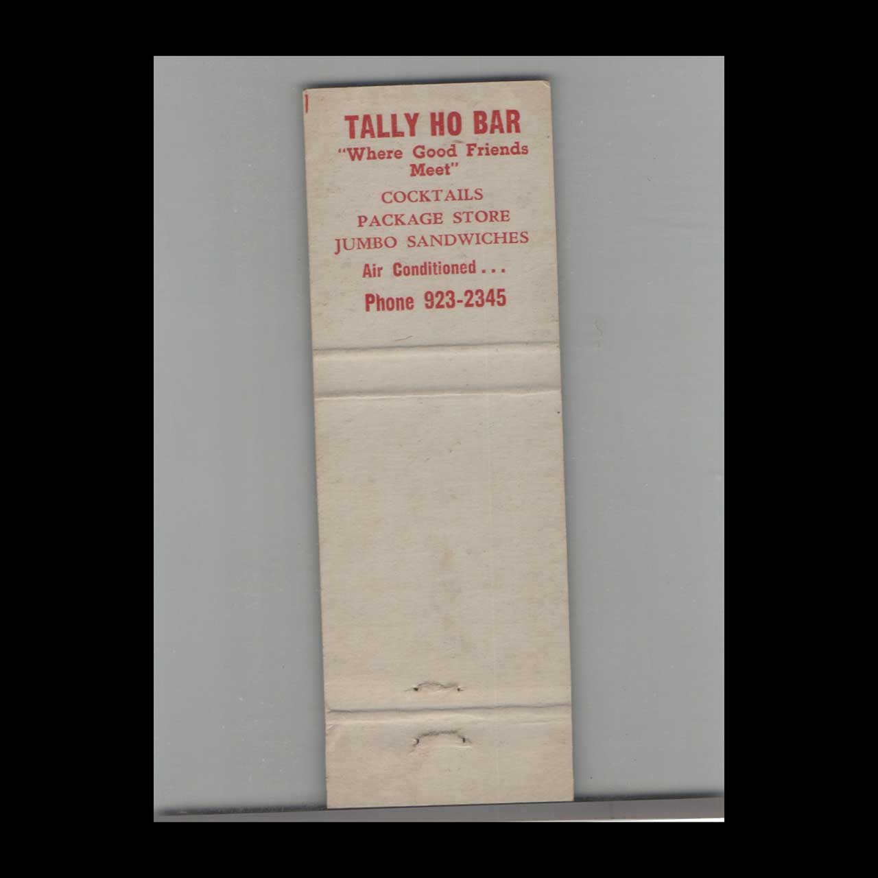 Vintage matchbook cover advertising Hollywood, Florida Tally Ho Bar.