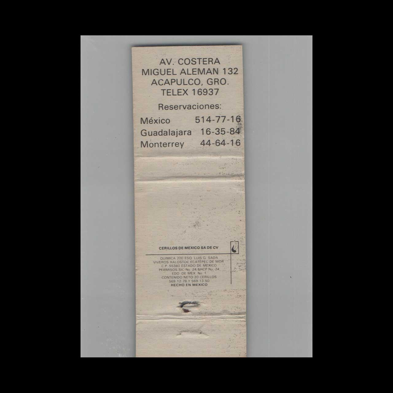 Matchbook Cover Hotel Acapulco Tortuga Acapulco Mexico