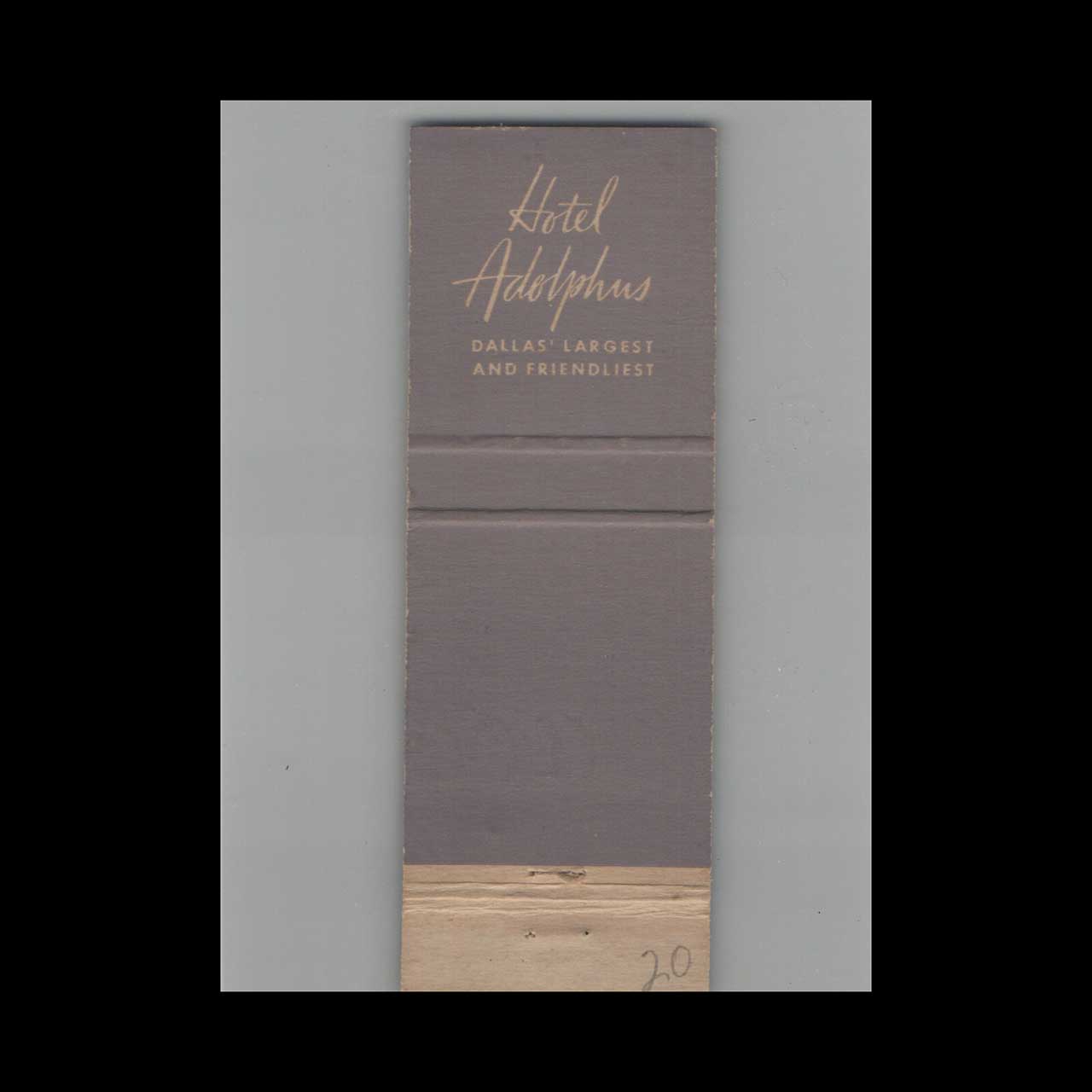 Vintage matchbook cover advertising Hotel Adolphus Dallas TX #11.