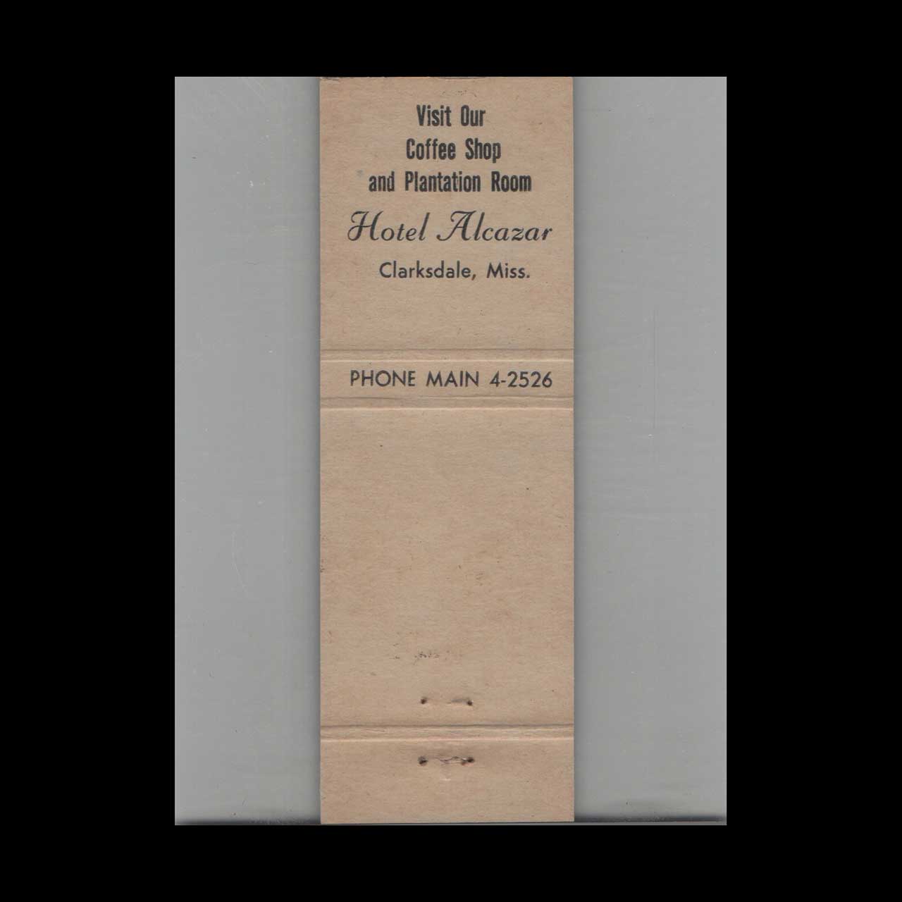 Matchbook Cover Hotel Alcazar Clarksdale, MS