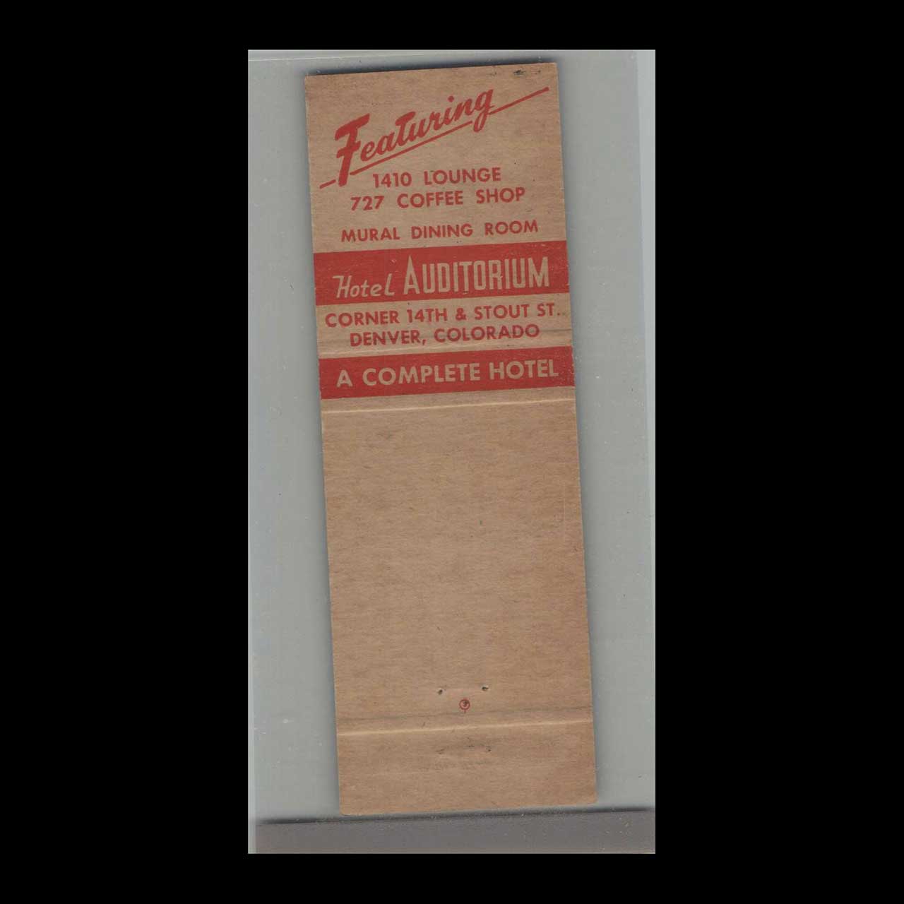 Vintage matchbook cover advertising Hotel Auditorium Denver, CO.
