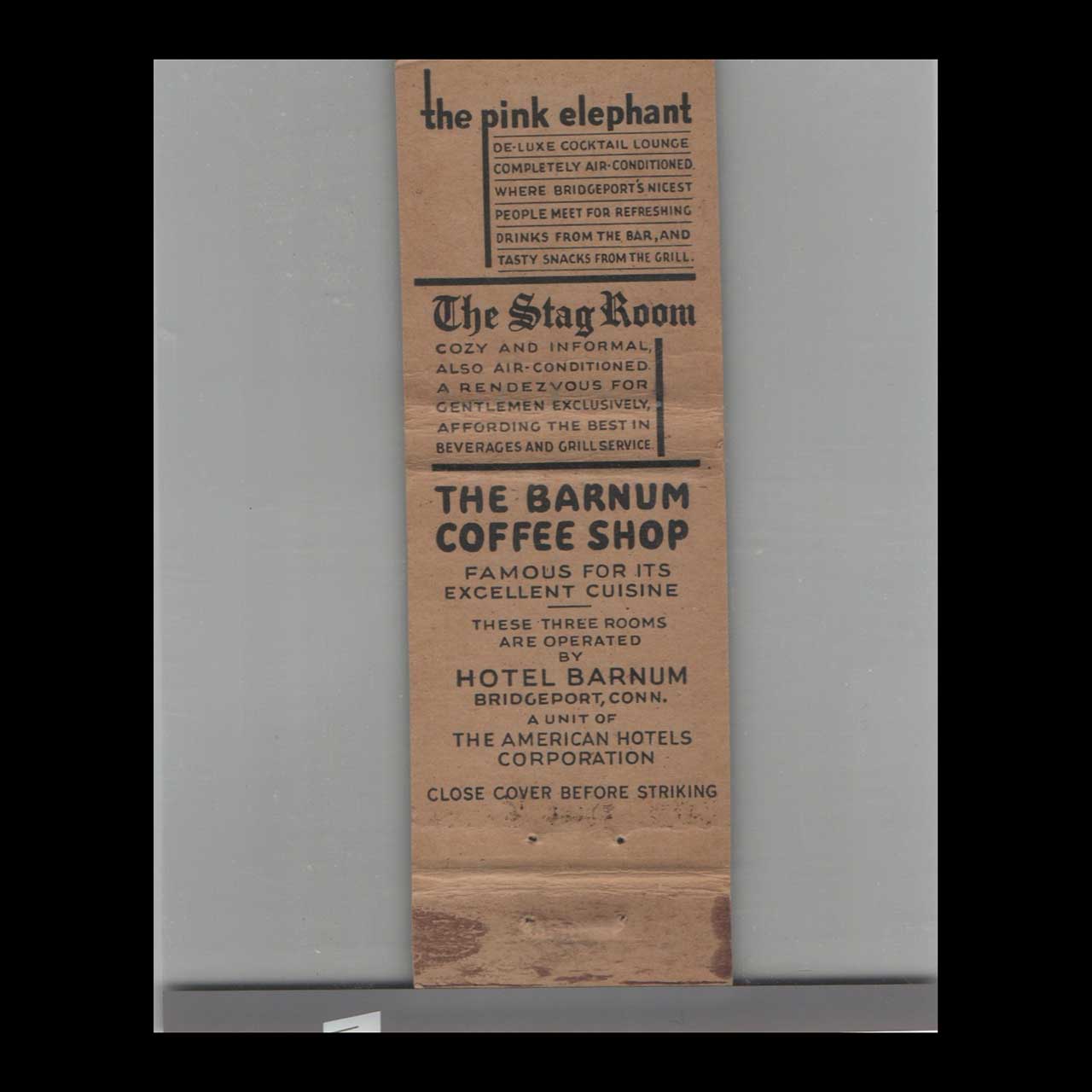 Matchbook Cover Hotel Barnum Bridgeport, CT