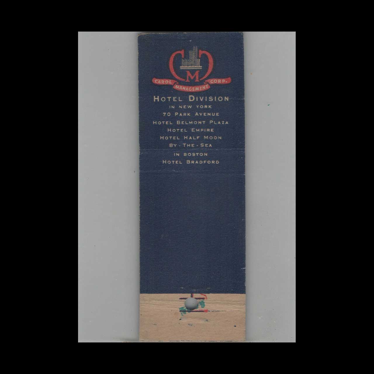 Vintage matchbook cover advertising Hotel Belmont Plaza New York NY #5.