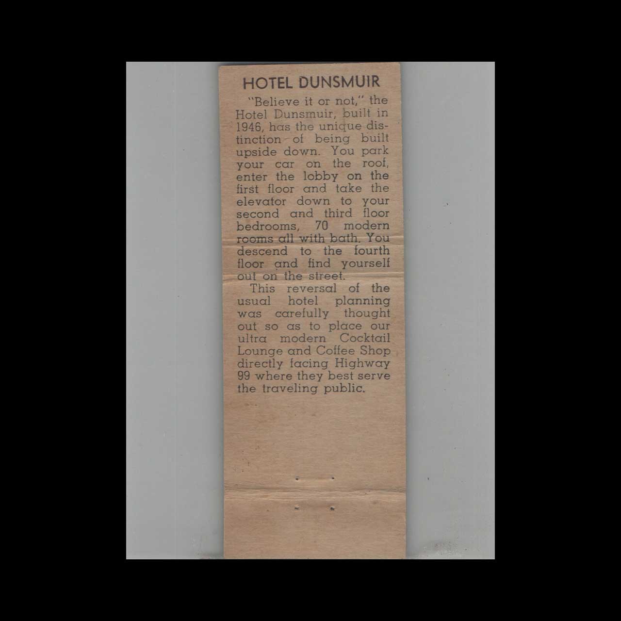 Matchbook Cover Hotel Dunsmuir – Dunsmuir CA