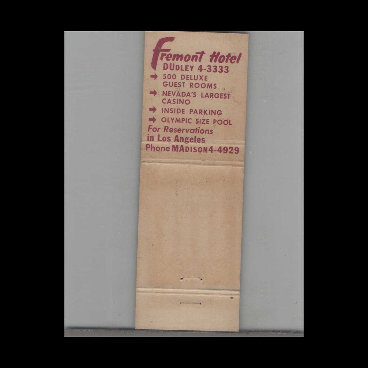 Vintage matchbook cover advertising Hotel Fremont & Casino Las Vegas, NV.