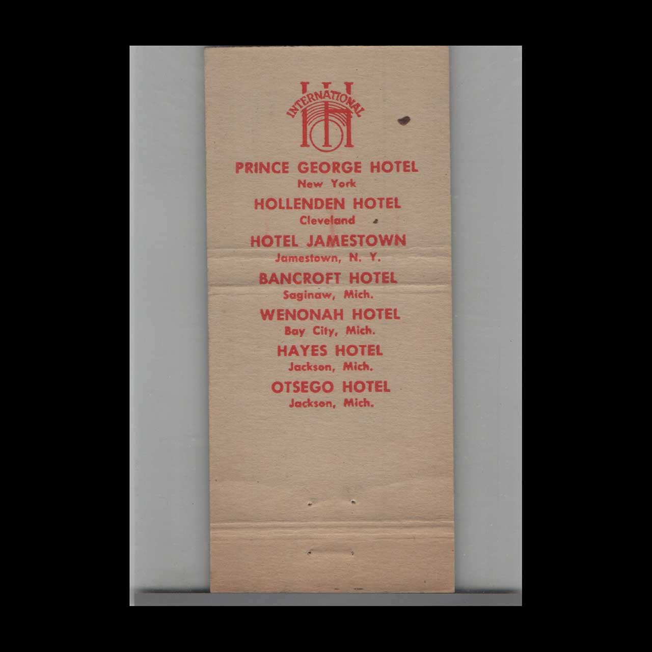 Matchbook Cover Hotel Hayes Jackson, MI