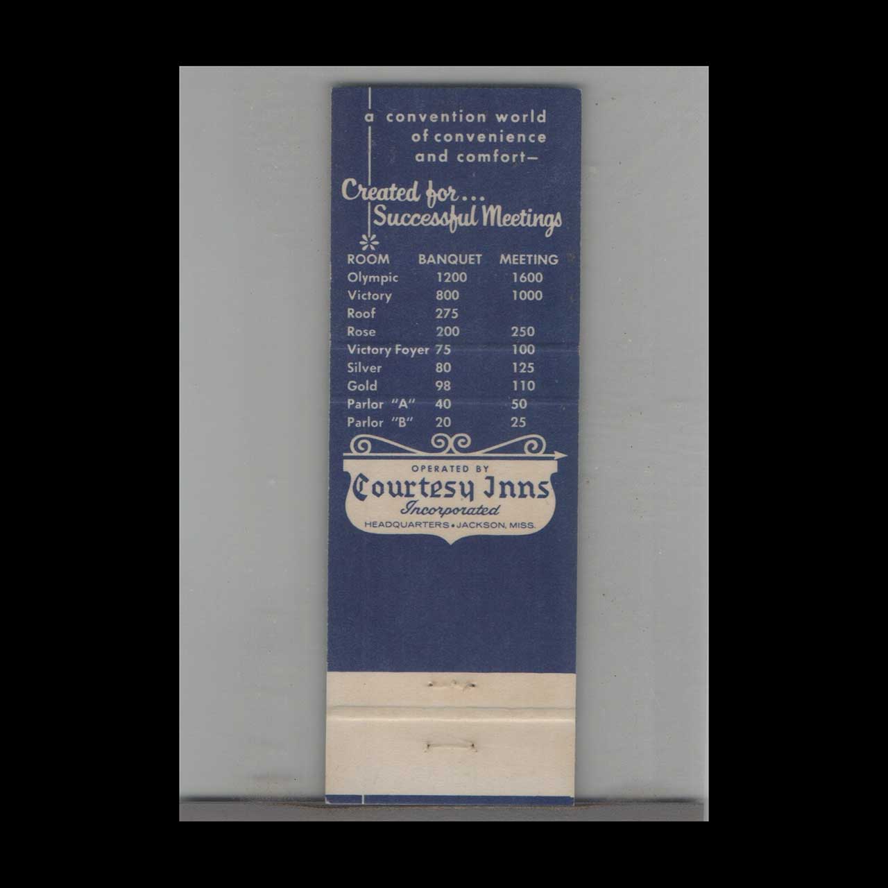 Vintage matchbook cover advertising Hotel Heidelberg Convention Headquarters Jackson, MS.