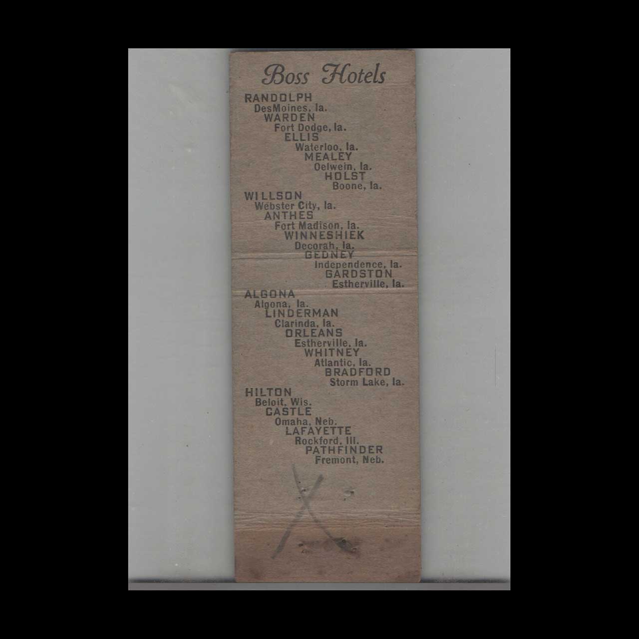 Matchbook Cover Hotel Pathfinder Fremont, NE