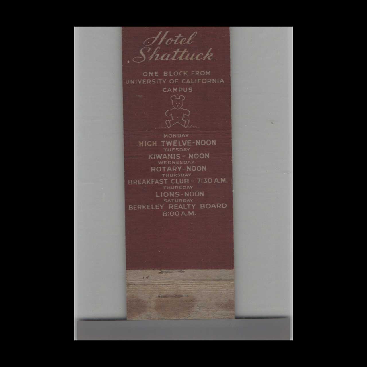 Matchbook Cover Hotel Shattuck Berkeley, CA