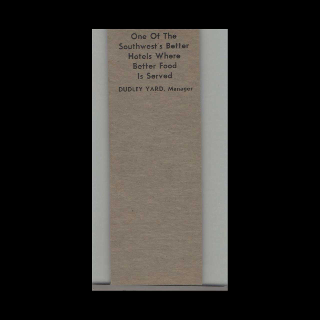Matchbook Cover Hotel Windsor Abilene, TX Sales Sample