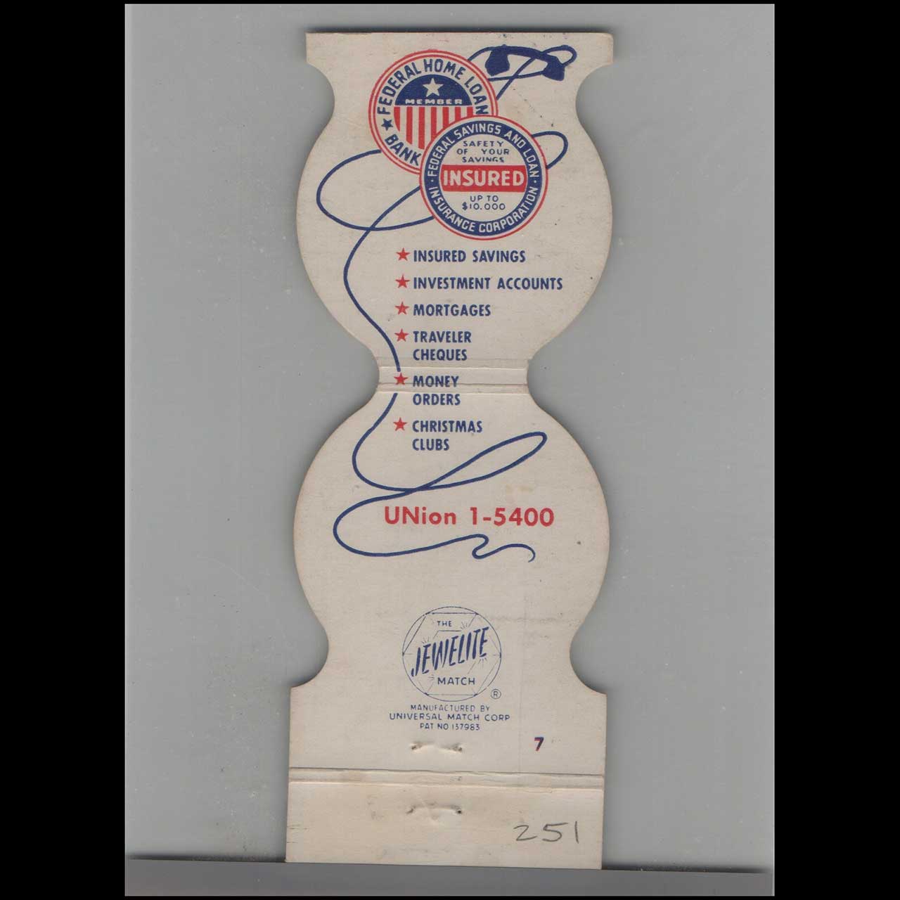 Vintage matchbook cover advertising Jewelite First Federal Savings Bank Providence RI.