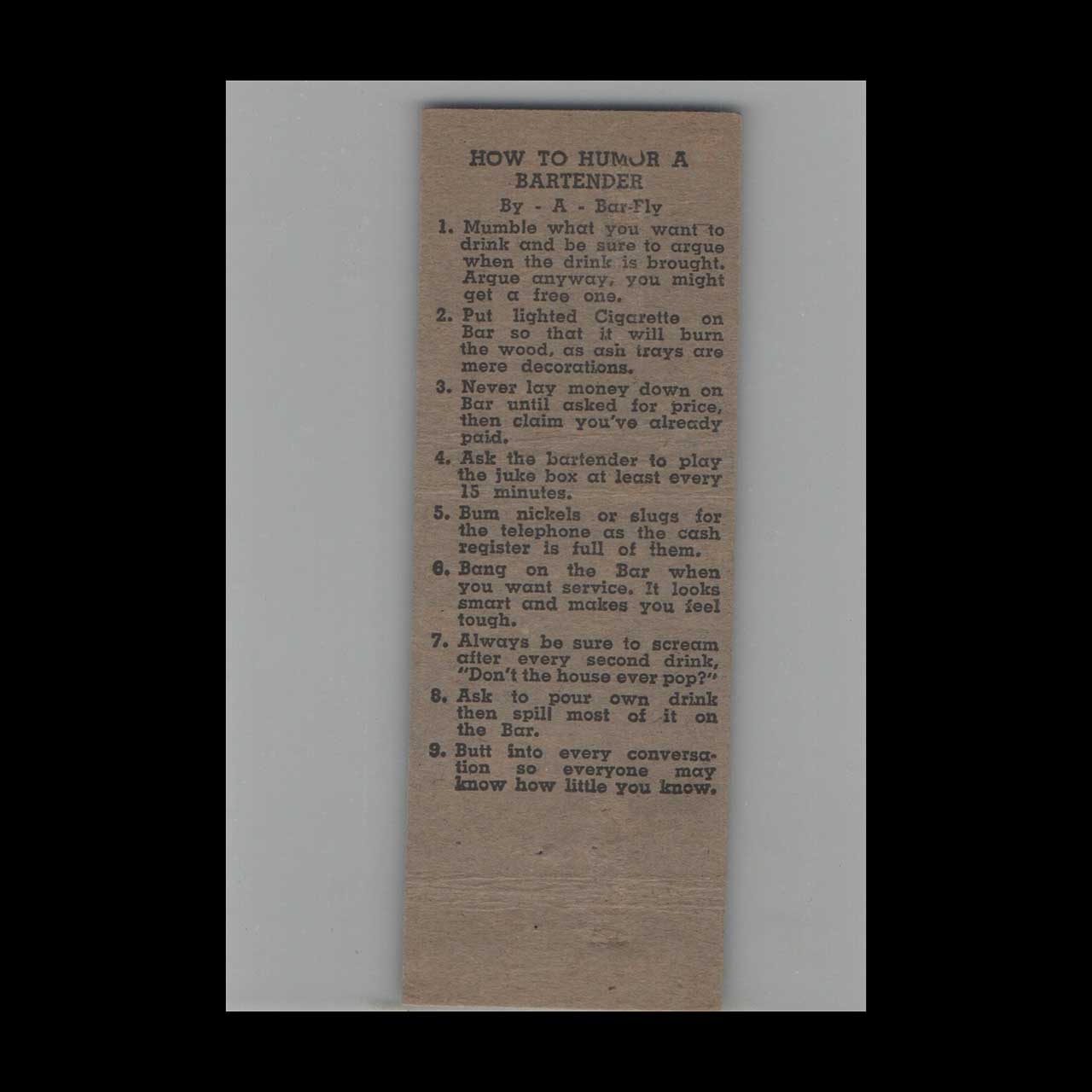 Vintage matchbook cover advertising Jimmie’s Bar & Package Orlando, FL.