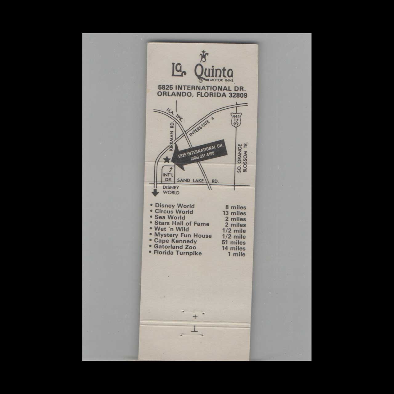 Matchbook Cover La Quinta Orlando, FL