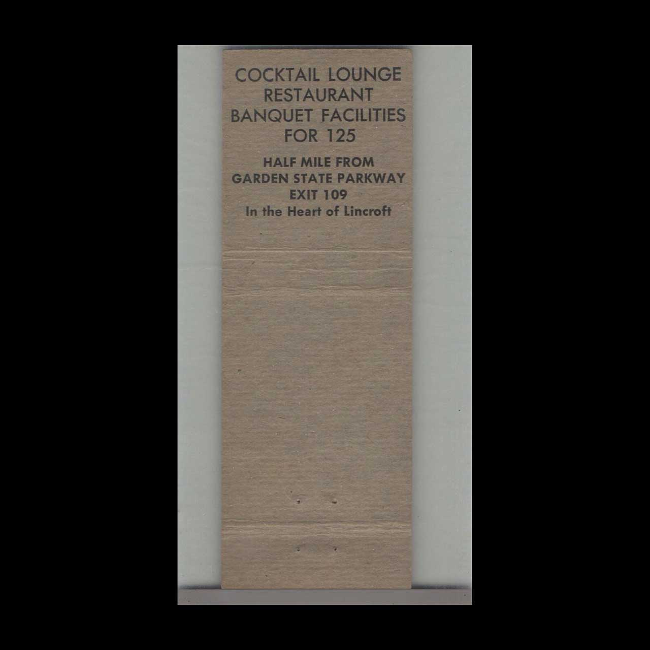 Vintage matchbook cover advertising Lincroft Inn Lincroft, NJ.
