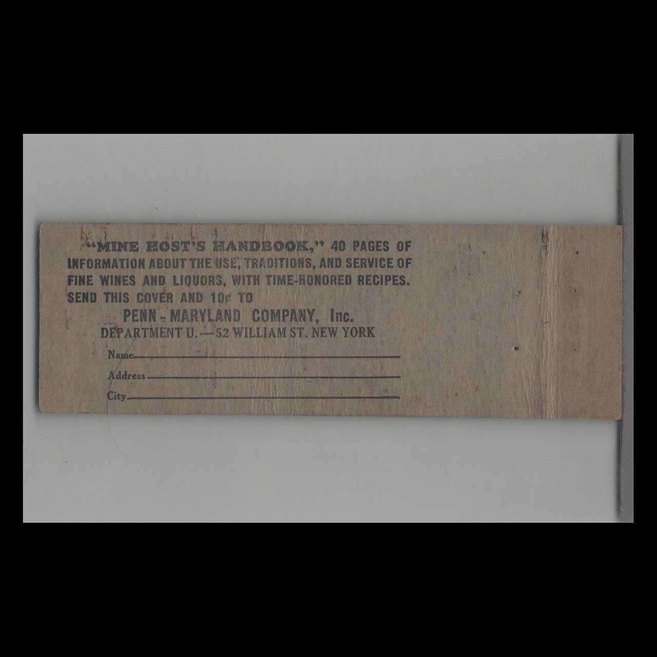 Matchbook Cover Liquor Brigadier Whiskey National Distillers