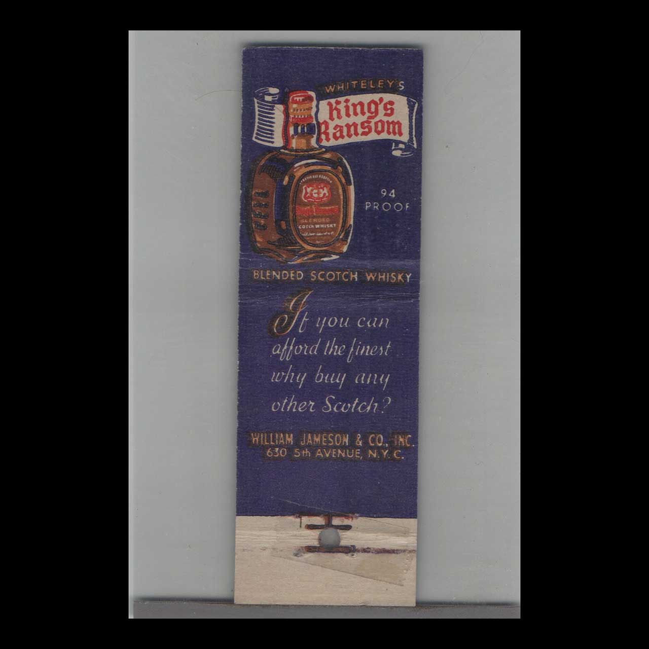Vintage matchbook cover advertising Liquor King’s Ransom A Whiskey Scotch.